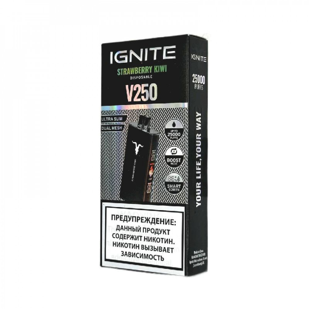 Электронная сигарета Ignite V250 Black 25000 - Strawberry Kiwi (Клубника киви) - купить в Новокузнецке